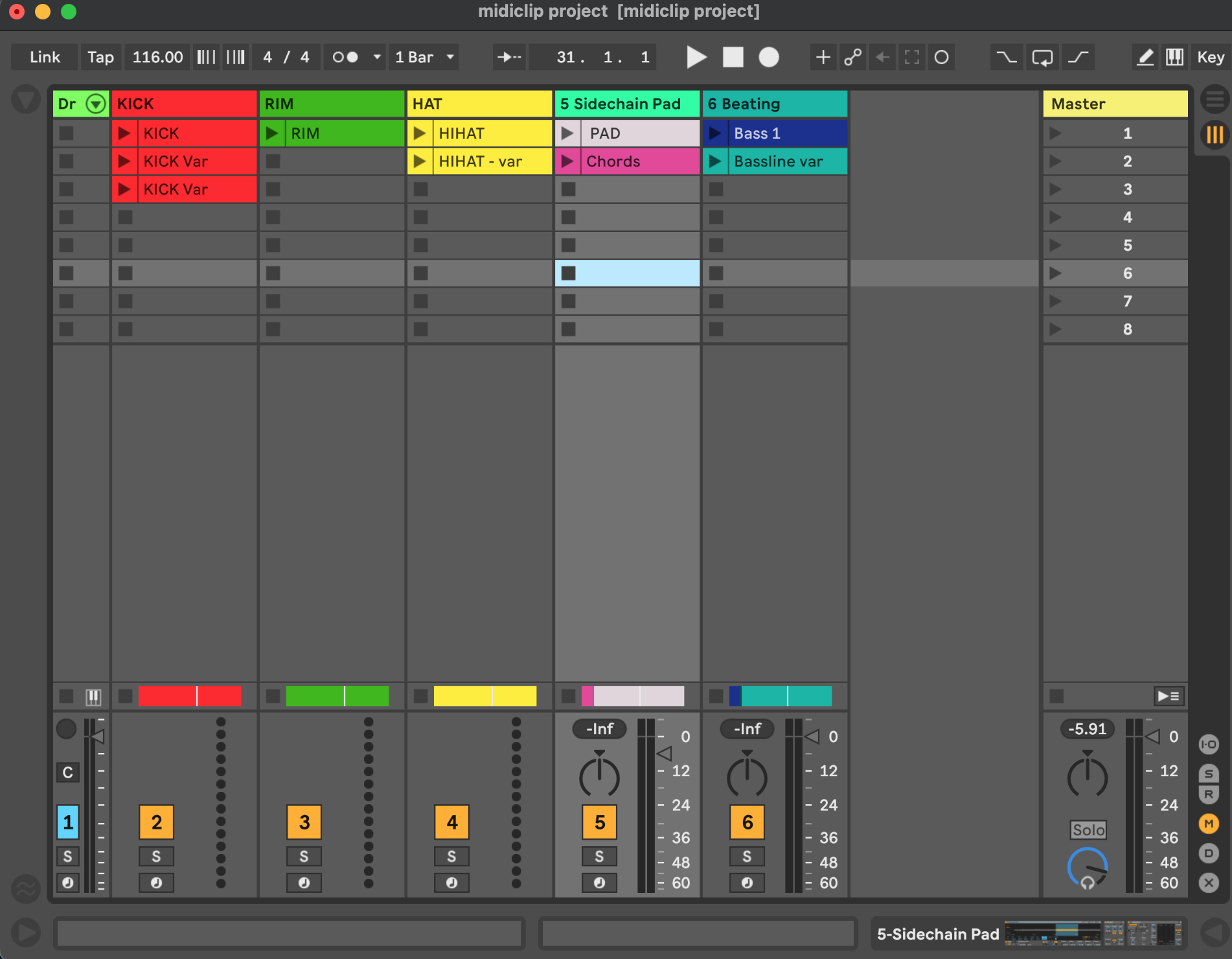 Your first setDownload an open the following Ableton live setPlease download the first archive file midiclip starter Project.zip and open it in Ableton Live. Attachmentsmidiclip starter Project.zip (237 KB)midiclip_project.zip (141 KB)Midi Clips Project